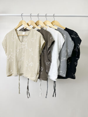 [1131] Musculosa Cey Puff Estampado Escote V con Tira